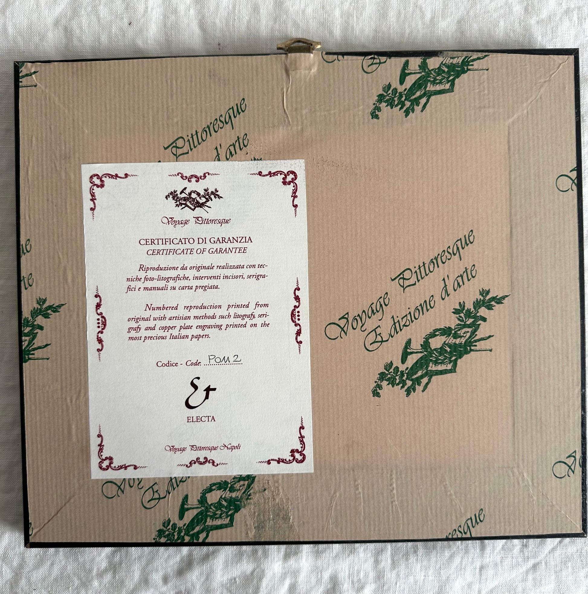 Burl wood frame, numbered reproduction printed from original with artisan methods such as litografy, serigrafy and copper plate engraving printed on the most precious Italian papers. Purchased in Italy measures 10" x 8 5/8"