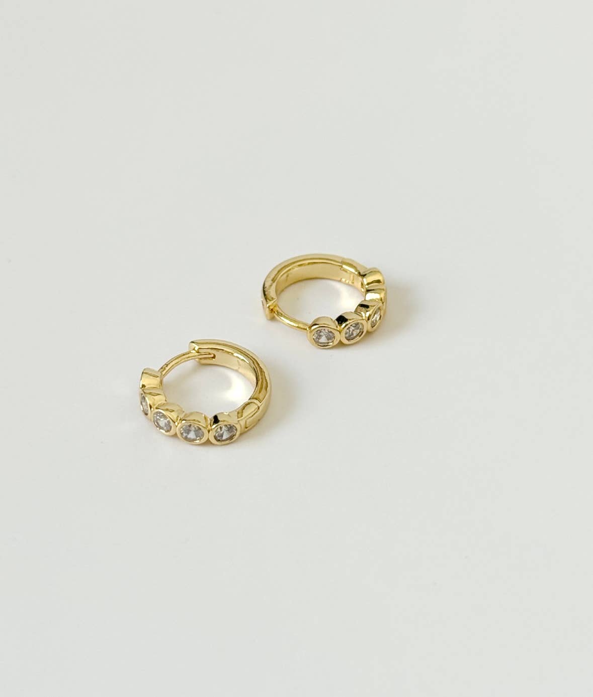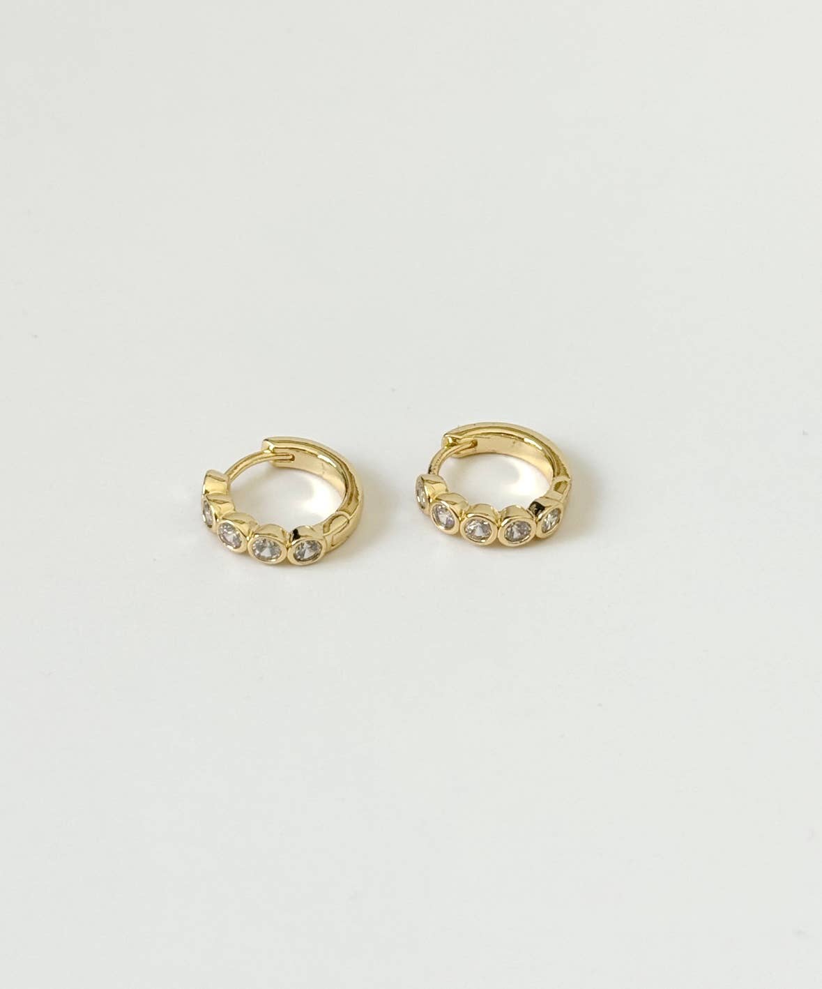 Gold plated with small clear CZ stones. Made in Los Angeles