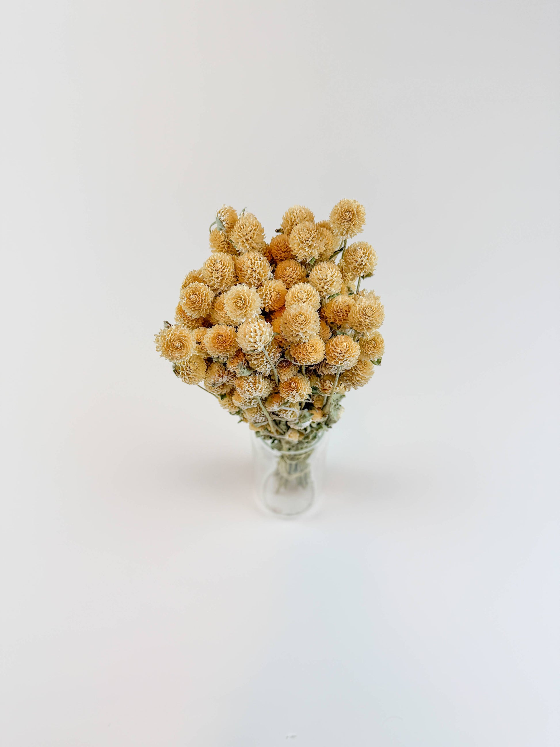 Bring soft, vintage charm to your floral offerings with our Cream Globe Amaranth. These naturally air-dried stems feature clover-like blooms in a delicate blush tone. The globe-shaped blooms range from 1/2" to 3/4" in diameter. Grown without dyes or preservatives, their color and form remain vibrant for years. 100% natural – no dyes, preservatives, or additives