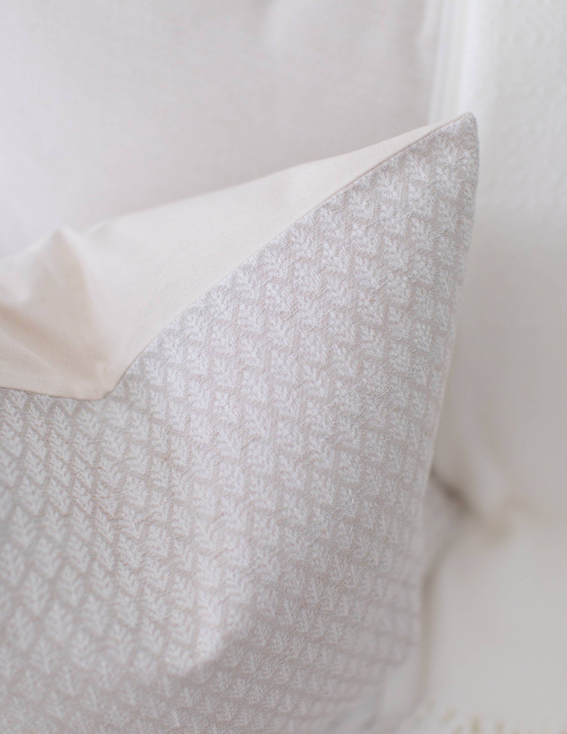 The Talisa 20"x20" Pillow Cover features a delicate floral pattern set against an ivory backdrop, offering a refined neutral tone that enhances tranquility in any space. Crafted from a medium to heavy textured fabric, this cover adds depth through its subtle pattern and texture. Please note, inserts are sold separately. Composed of 86% polyester and 14% cotton on the front, with a 100% cotton back, each cover is thoughtfully handmade in the USA and finished with an invisible zipper for a seamless appearance.