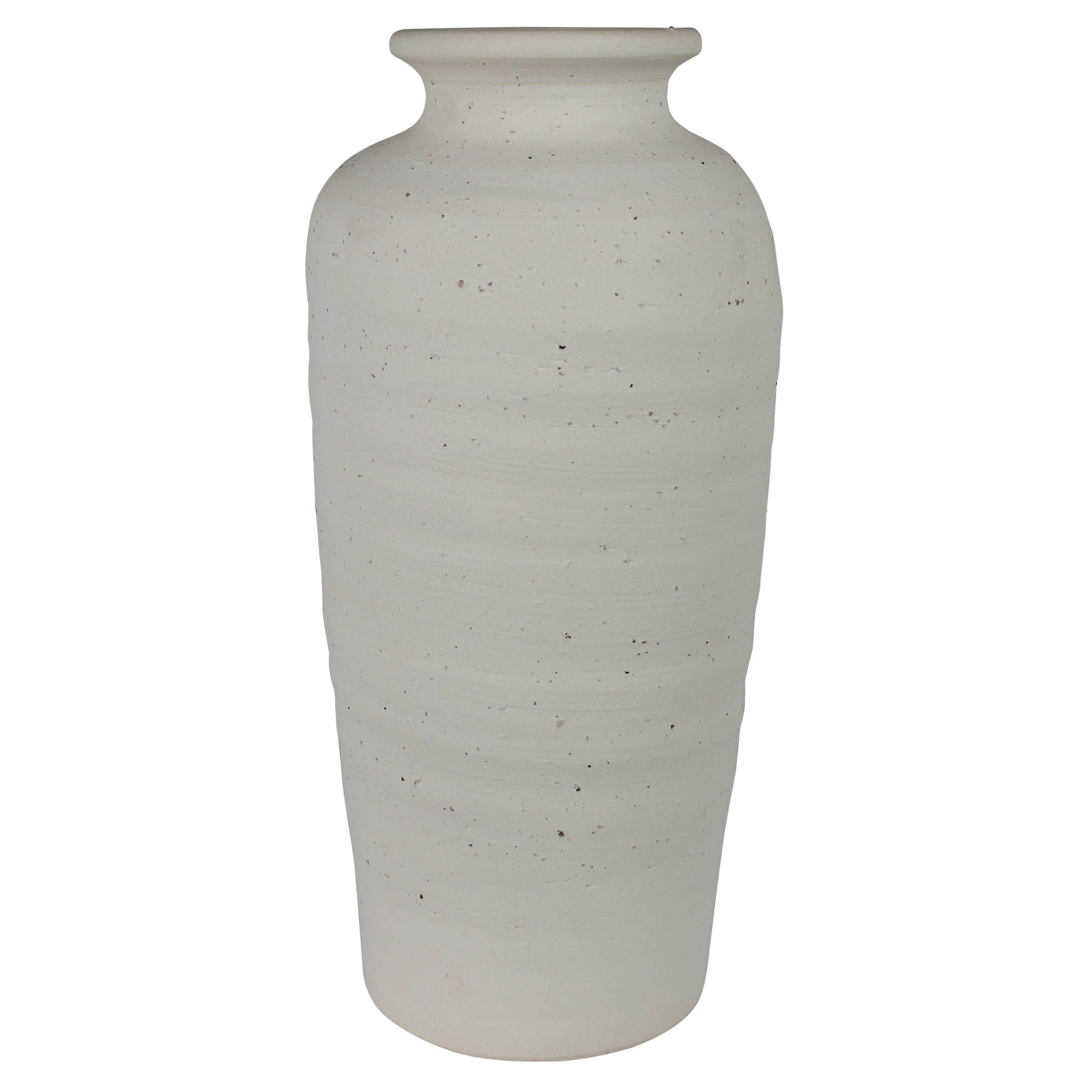 An understated white ceramic vase with a hand-thrown feel and subtle texture brings effortless elegance to any space. Its simple, organic design adds timeless beauty, perfect for showcasing flowers or as a refined standalone accent.