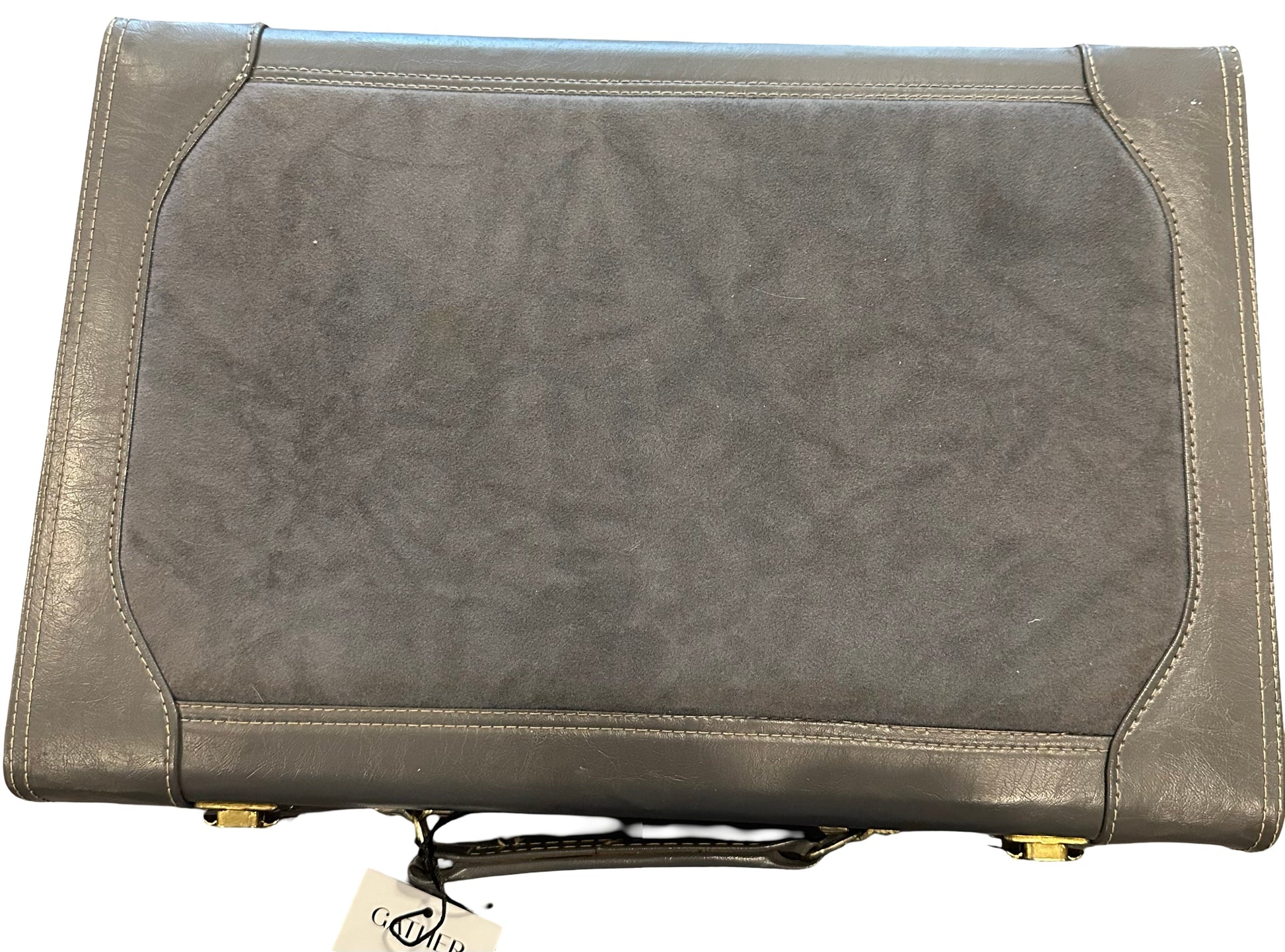 A distinguished backgammon set featuring refined grey-toned leather and suede construction, complete with all gaming pieces. Perfect for the discerning player who appreciates timeless strategy games and classic craftsmanship.