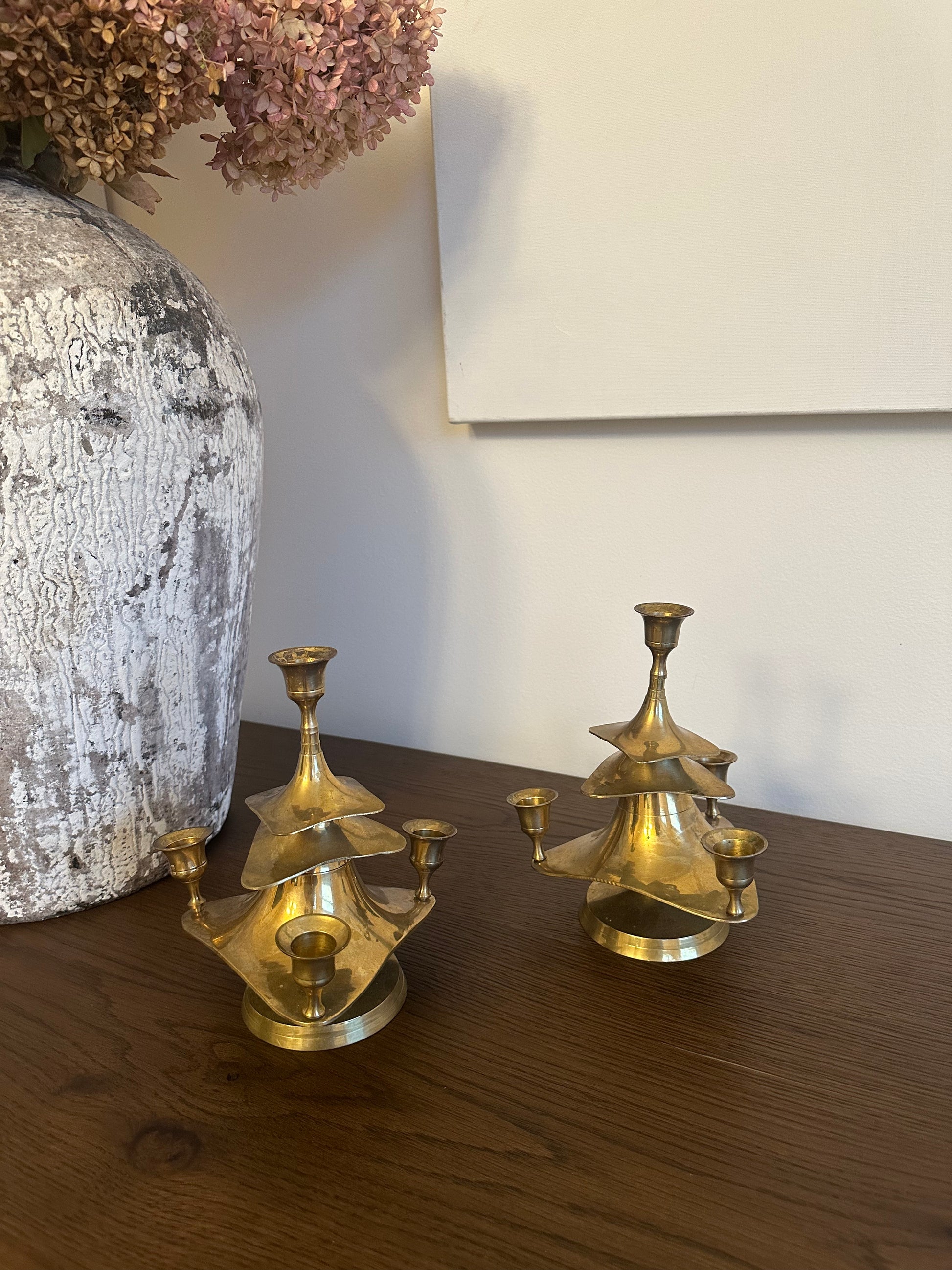 Vintage Brass Tree Candlesticks