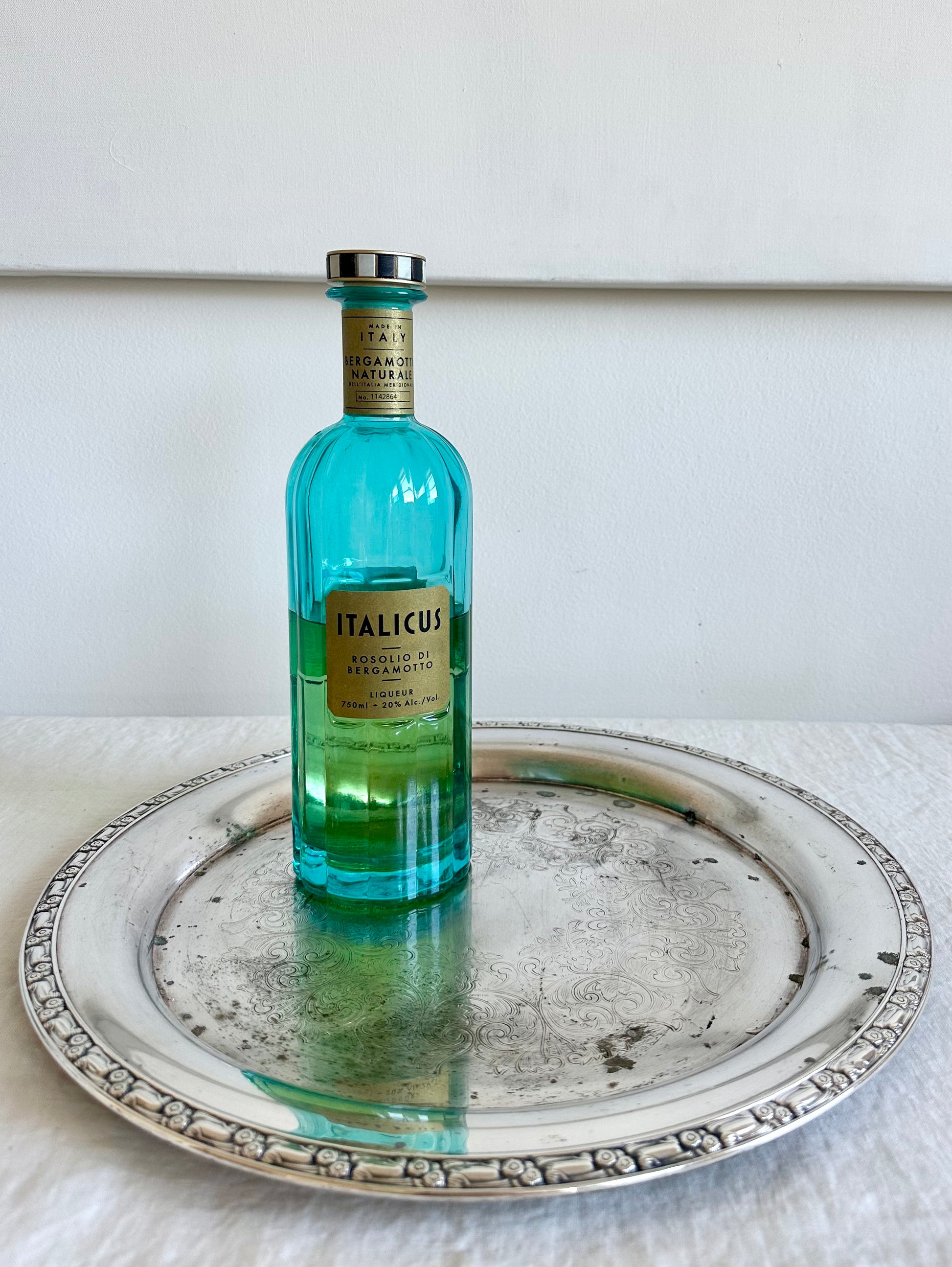 Vintage Silver Plate Tray with etching and edge detail. Shows signs of age and some patina.